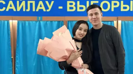 На городском избирательном участке № 93 молодой человек по имени Даулет сделал предложение возлюбленной Аяжан. Девушка пришла на голосование. Выходя из кабинки для голосования, она увидела своего молодого человека, который ждал ее с букетом цветов.