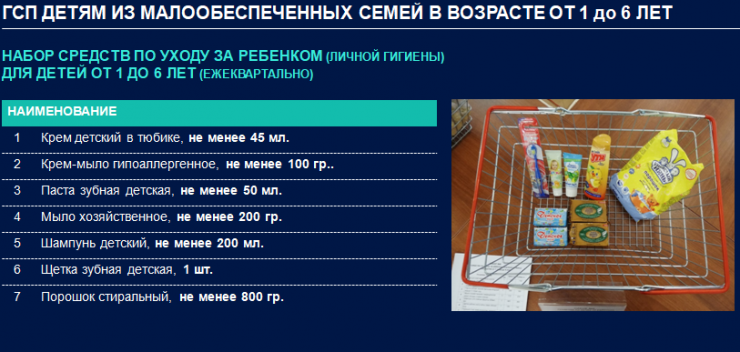 Помощь называется "гарантированный социальный пакет". Он предназначен для дошкольников, семьи которых получают адресную социальную помощь (АСП). Выдавать такие наборы начнут с февраля.