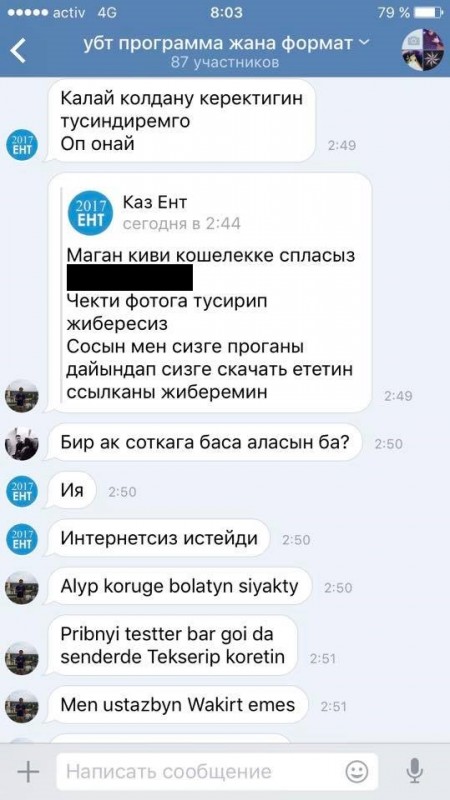 В социальных сетях начали продавать программу, которая якобы помогает набрать хорошие баллы на ЕНТ. Об этом в Facebook написал алматинец Дидар Марданов, передает корреспондент Tengrinews.kz.