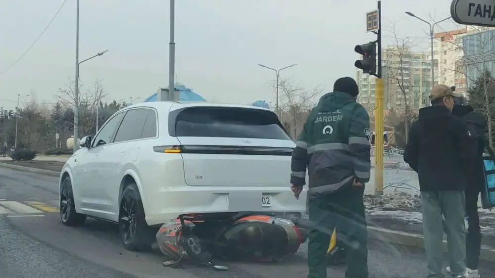 В полиции Алматы сообщили, что мопед совершил столкновение с автомобилем люксовой китайской марки.