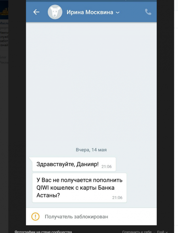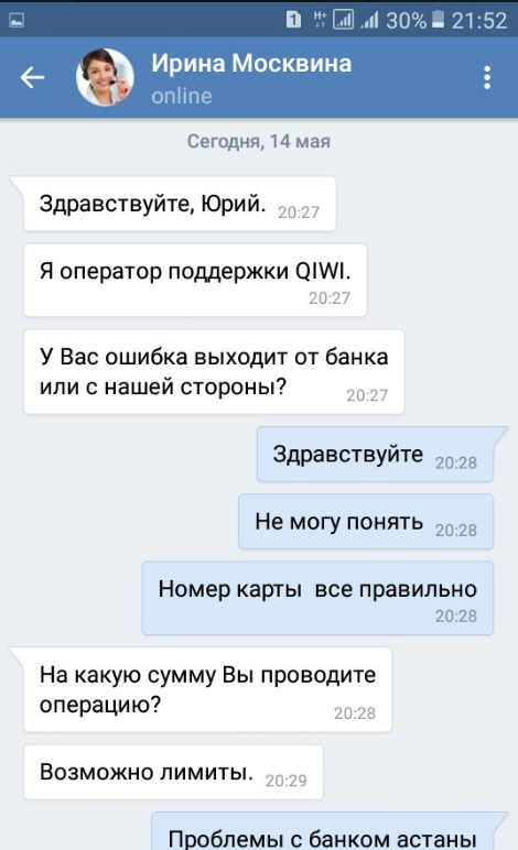 В частности, клиенты Банка Астаны поделились фрагментами переписки, из которой видно, что мошенники выдавали себя за службу поддержки QIWI.