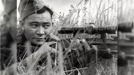 "Летом 1943 года Сулейменов довел количество убитых им гитлеровцев до 239. (...) Немцы, испытывавшие панический страх перед ним, прозвали его "азиатский стрелок", - рассказывает Мухтар Кул-Мухаммед.