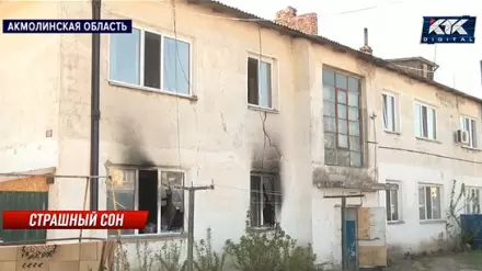 Муж с женой и 4-летние двойняшки не смогли выбраться из горящего дома под Кокшетау Кадр из сюжета канала КТК