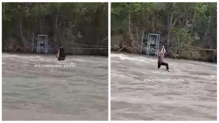 Мужчина сорвался в реку при попытке переправы по натянутому железному тросу и был унесен течением. Тело его пока не нашли.