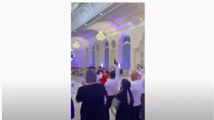В социальных сетях появилось видео торжества, на котором один из гостей после произнесения тоста выстрелил из пистолета в помещении.