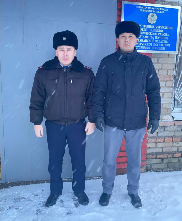 Аманкелди Абдрахиев, начальник поселкового отдела полиции, и Кайрат Аскаров, ювенальный полицейский, благополучно оттащили мужчину на безопасное место и помогли медицинским работникам донести его до кареты скорой помощи.