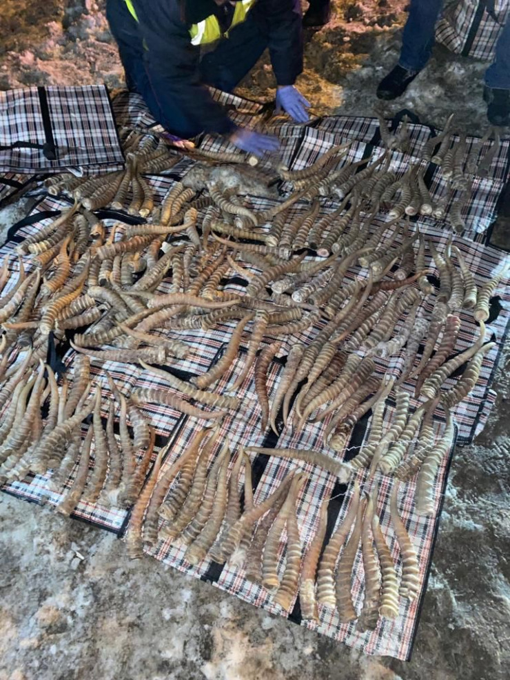 "22 декабря в рамках ОПМ "Сайгак" на республиканской автодороге Екатеринбург - Алматы сотрудники остановили автомобиль марки Toyota Alphard. В багажном отделении обнаружено три дорожные сумки, принадлежащие 29-летнему пассажиру, гражданину ближнего зарубежья. В сумках находилось 916 дериватов в виде рогов сайги, денежные средства в сумме около 7,5 миллионов тенге. Предположительно, правонарушитель нанес государству ущерб около двух миллиардов тенге", - сообщил начальник УБОП ДП Костанайской области Серик Байгонов.