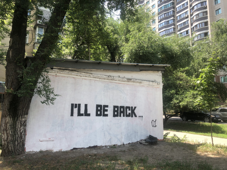 Изображение Первого Президента Казахстана появилось ранее в Бостандыкском районе утром 4 мая. Мурал был нарисован на наружной стене одного из гаражей, расположенных на пересечении улиц Жарокова и Мынбаева.