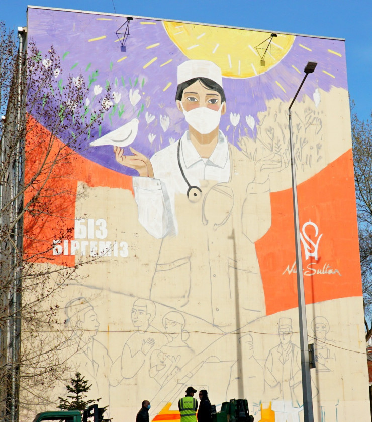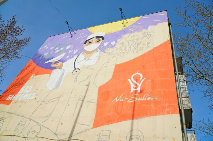 "Основной посыл мурала - благодарность нашим врачам! Спасибо вам, мы всем сердцем с вами. Сейчас каждый представитель медперсонала - герой в этом непростом сражении с болезнью. Мы благодарны акимату города Нур-Султана за помощь. Над проектом работает большая творческая группа. Бiз бiргеміз!" - добавила она.