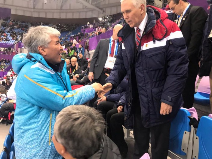 Министр культуры и спорта РК Арыстанбек Мухамедиулы встретился с вице-президентом США Майклом Пенсом и президентом Республики Корея Муном Чжэ Ином на Олимпиаде в Пхенчхане, передает корреспондент Tengrinews.kz.