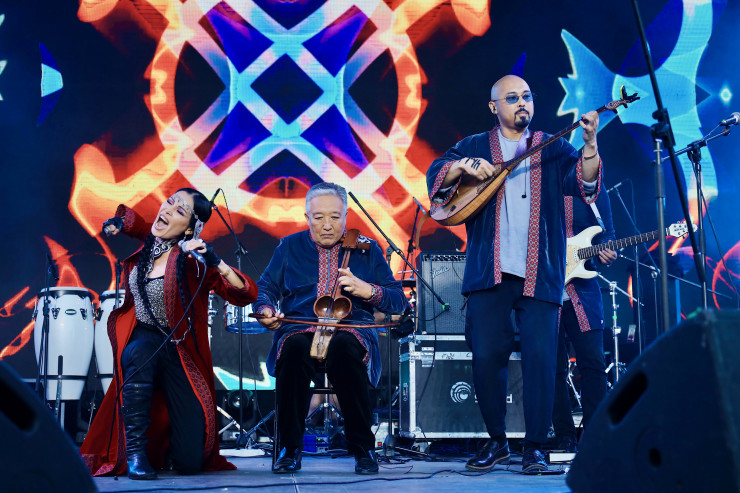 Со сцены уже звучат древние казахские кюи в современном звучании от еще одной казахстанской группы – Tengri. В их исполнении как будто слышалось все величие и могущество бескрайних казахстанских степей.