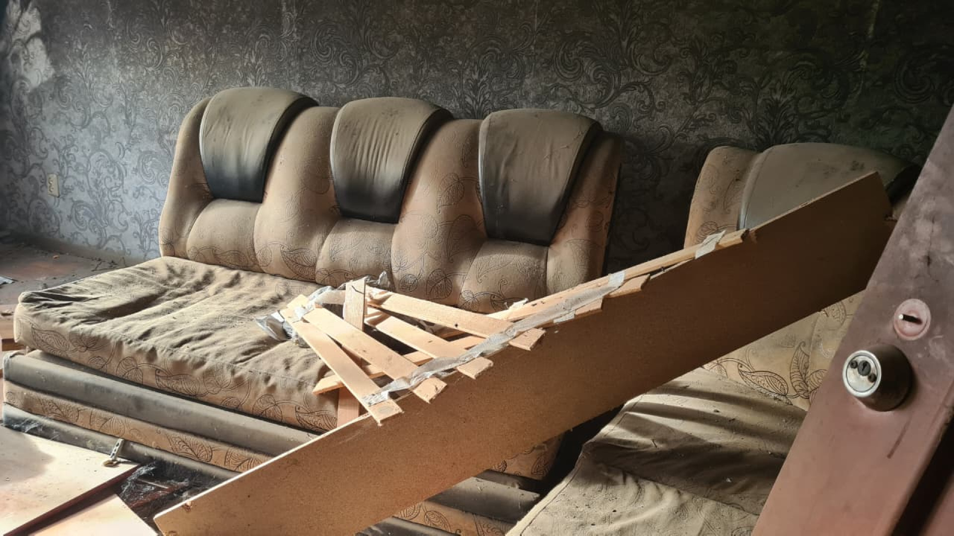 Обугленная мебель и техника так и остались на месте — как немое напоминание о той ночи.