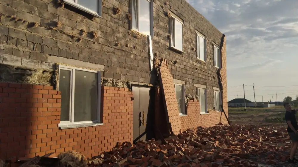 В Павлодарской области в городе Аксу две двухэтажные новостройки, предназначенные для многодетных семей, выпускников детдомов и лиц с инвалидностью, не выдержали первых сильных ветров, передает корреспондент Tengrinews.kz.