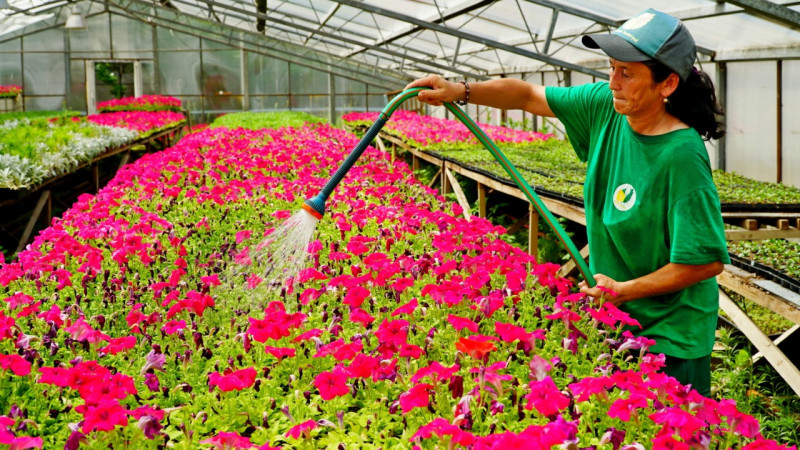 В работах ежедневно задействовано 130 цветоводов. Сотрудники работают согласно строгим саннормам.