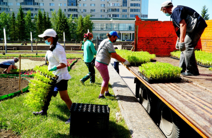 В Нур-Султане активно продолжаются работы по посадке цветов, кустарников и деревьев. В 2020 году в городе высадят до 6 миллионов цветов. Работами охвачены все районы.