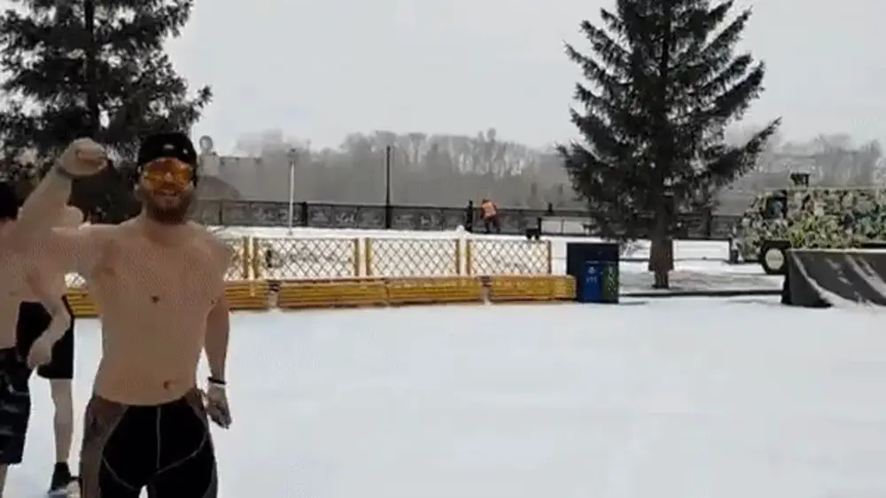 Кроме фотографий "моржей" в сети также появилось видео, на котором эти же ребята трусцой бегут вдоль набережной Есиля на свой избирательный участок.