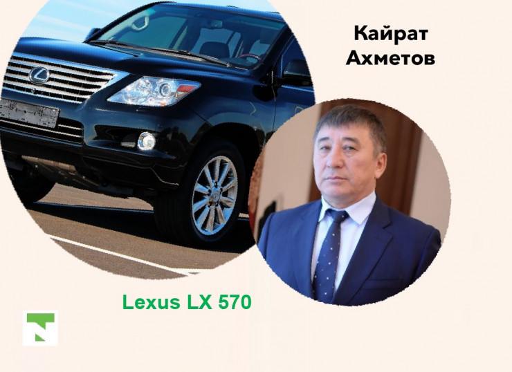 Аким Костаная Кайрат Ахметов передвигается на черном служебном Lexus LX 570 2010 года выпуска. Данный автомобиль был передан акимату на безвозмездной основе ТОО "Шаруашылык 2012", говорится в ответе на официальный запрос.