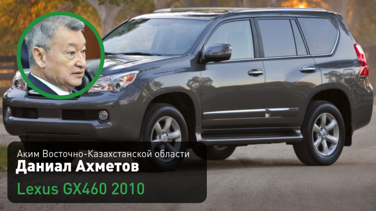 Аким Восточно-Казахстанской области Даниал Ахметов (на этой должности с 11 ноября 2014 года) ездит на черном Lexus GX 460 2010 года выпуска.