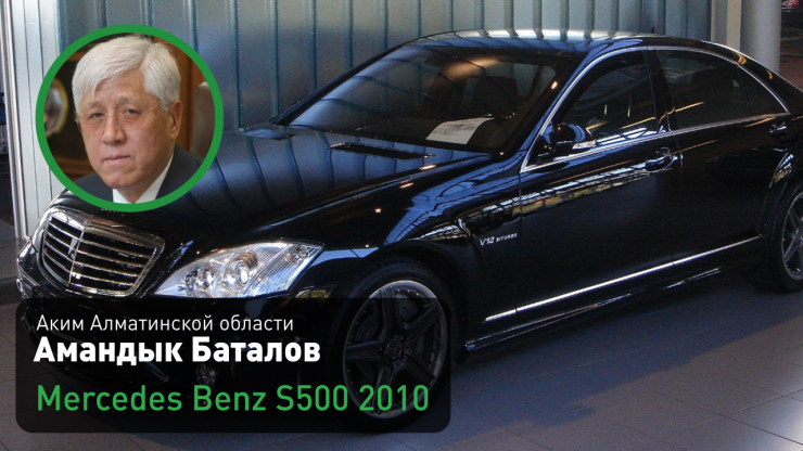Аким Алматинской области Амандык Баталов (на этой должности с 20 августа 2014 года) передвигается на Mercedes Benz S 500, цвет - черный металлик, 2010 год выпуска.