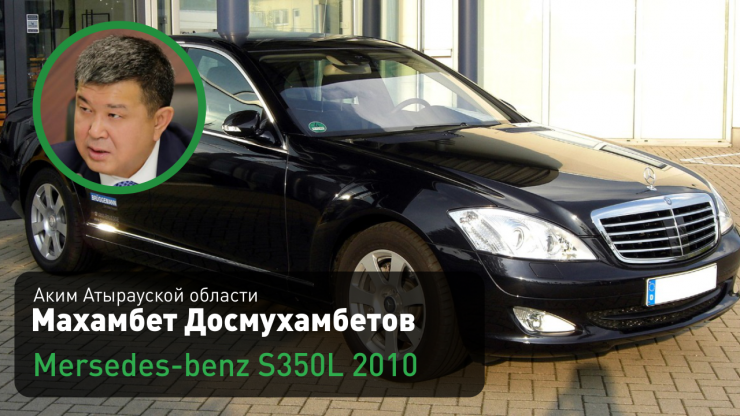 Аким Атырауской области Махамбет Досмухамбетов (на этой должности с 18 декабря 2019 года) ездит на Mersedes-Benz S 350 L, цвет черный, 2010 год выпуска.