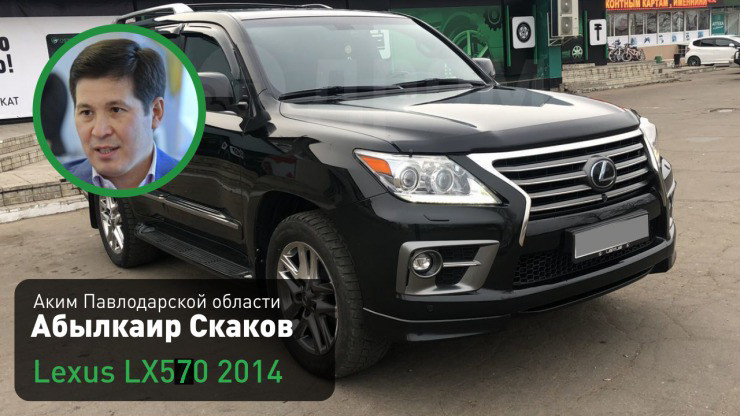 Аким Павлодарской области Абылкаир Скаков (на этой должности с 21 января 2020 года) ездит на черном Lexus LX 570 2014 года выпуска.