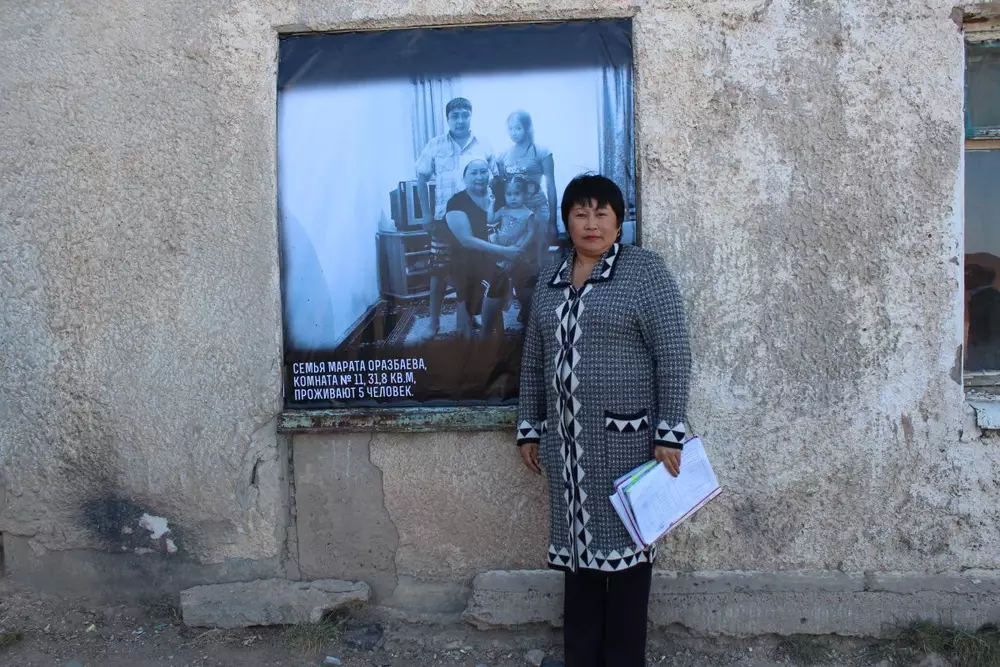 Дом по адресу Ондирис, 1А, был построен в 1978 году. В настоящее время в общежитии проживают 62 семьи, и у большинства из них размер комнат не больше 15 квадратных метров. Есть семьи, которые живут впятером на 10 квадратах. Семья Тахановых из четверых человек ютится на 11 квадратах. На руках у хозяйки Гульмиры Тахановой грудной ребенок.