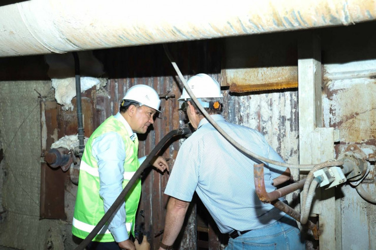 Главный инженер ТЭС МАЭК сообщил акиму области, что на котлоагрегате были заменены участки правого соленого отсека, около 9 метров труб, работы там идут к завершающему этапу. По словам инженера, несмотря на различные риски, работа идет в круглосуточном режиме.