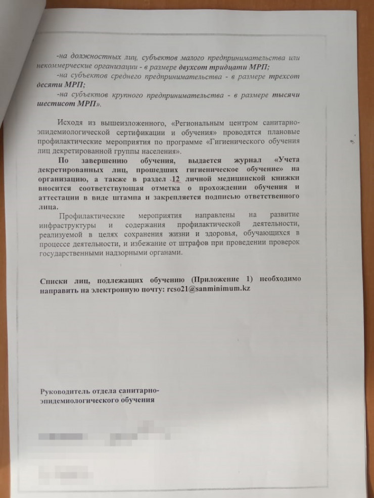 В качестве доказательства учителя показали корреспонденту сам документ. В нем говорится, что согласно приказу министра здравоохранения от 16 ноября 2020 года "Декретированные лица подлежат первичному гигиеническому обучению при поступлении на работу и в дальнейшем периодичностью один раз в год".
