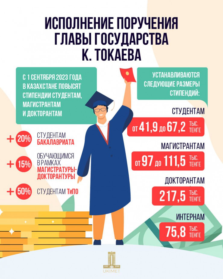 Согласно постановлению правительства, которое подписал премьер-министр Алихан Смаилов, увеличение стипендий ожидается: