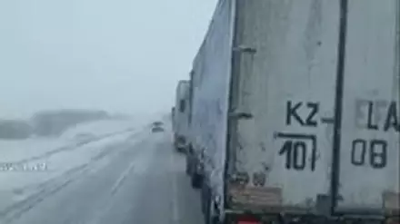 На трассе Самара - Шымкент образовалась пробка из-за гололеда