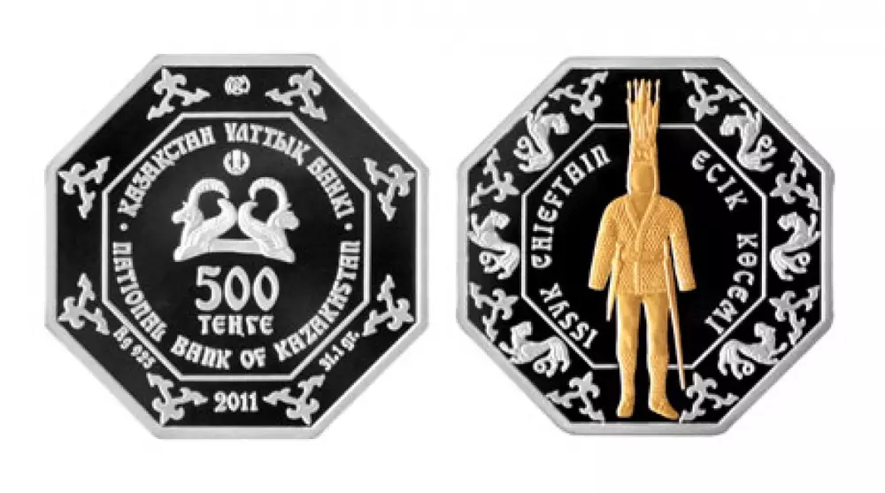 "Памятная серебряная монета "Иссыкский вождь" открывает новую серию монет "Достояние Республики" и отличается от остальных монет формой восьмигранника", - говорится в сообщении Нацбанка. Монета изготовлена с применением технологии нанесения на ее поверхность позолоты из серебра 925 пробы, ее масса составляет 31,1 грамма, а тираж - пять тысяч штук.