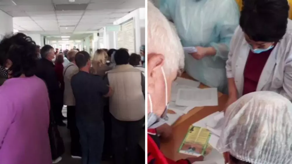 Видео с огромной толпой в больнице Талгара появилось в социальных сетях. По данным автора ролика, эти люди пришли для получения второй дозы вакцины от коронавируса.