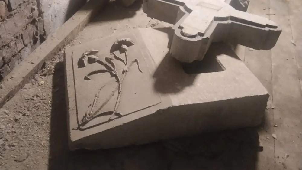 "Когда случился порыв в подвале, мы спустились с соседом и увидели крест, надгробие и плиту. Думали, кто-то из старожилов дома прольет свет на эту историю, но тщетно. Когда-то тут были кладовки у каждого, возможно, они там хранились, а когда разобрали, их никто не рискнул вынести. Скорее это даже надгробие не взрослого человека, а ребенка, оно небольшое", - рассказала Оксана Курбанова.