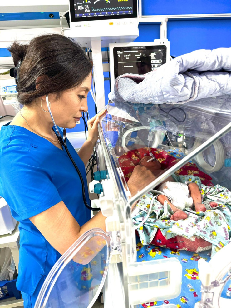 Людмила Панибратец в профессии 30 лет. Врач-неонатолог заведует отделением реанимации новорожденных в Перинатальном центре №2 Караганды и является клиническим наставником для молодых резидентов-неонатологов Карагандинского медуниверситета. Свою профессию она выбрала еще в школьные годы.