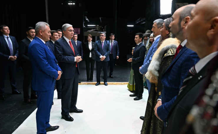 После просмотра Президент побеседовал с автором произведения и труппой Государственного академического казахского музыкально-драматического театра имени К. Куанышбаева.
