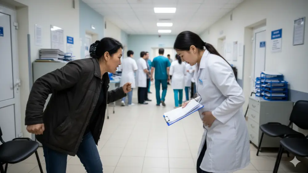 "Но позже женщина вернулась и потребовала у персонала всё же выделить ей место в палате. Медперсонал объяснил, что свободных мест нет из-за эпидситуации с гриппом и ОРВИ. Тогда она подошла к моей жене и начала снимать её на видео и возмущаться из-за отказа", — рассказал Нурлан.