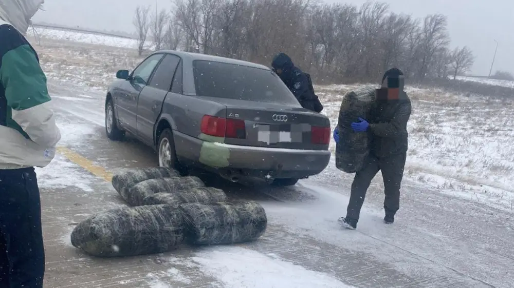 В ходе осмотра салона и багажника Audi A6 полицейские Карагандинской области обнаружили 13 мешков с веществом растительного происхождения. Согласно заключению экспертизы, изъятое вещество оказалось высушенной марихуаной общим весом более 266 килограммов.