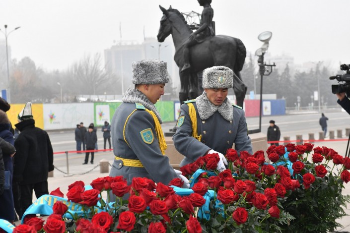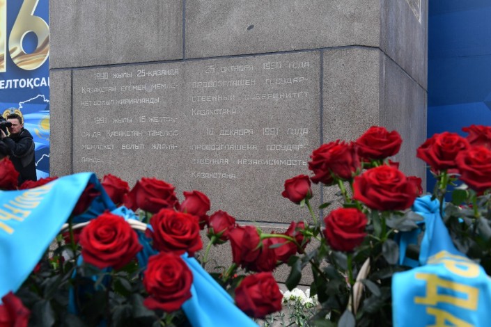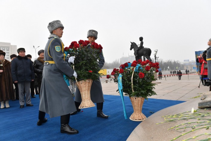 На площади Республики в Алматы состоялось возложение цветов к монументу Независимости, передает корреспондент Tengrinews.kz.