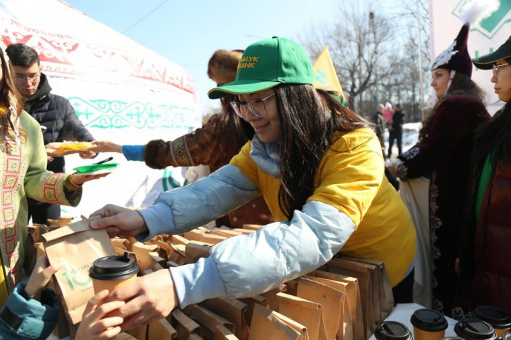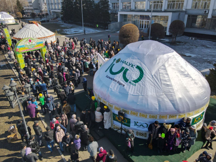 Актюбинский филиал Halyk проводил мероприятие на центральной площади, где прошел концерт для жителей города. На праздник собрался почти весь город. Для всех было подготовлено угощение - баурсаки, наурыз-коже, плов.