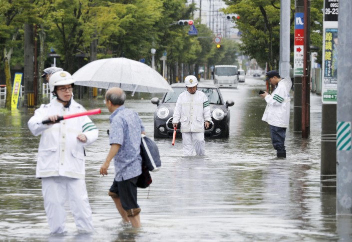 В этих районах выпало более 100 миллилитров осадков в час. В результате реки вышли из берегов и затопили несколько префектур. Затоплены дороги, железнодорожные станции, пострадали общественный транспорт, метро и объекты торговли.