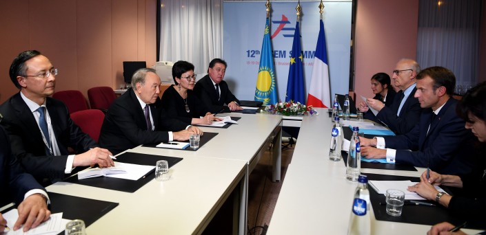 Президент Казахстана Нурсултан Назарбаев встретился в Брюсселе с президентом Франции Эммануэлем Макроном, сообщает пресс-служба Главы государства 19 октября. Встреча состоялась на полях саммита Форума "Азия - Европа".