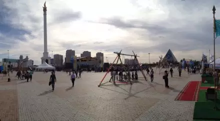 Добавим, что празднование у монумента "Қазақ Елі" началось с красочного парада-шествия представителей областей Казахстана. Торжественное шествие с поздравительными словами открыл заместитель акима города Астаны Ермек Аманшаев, он поблагодарил всех представителей регионов, которые приехали в столицу на празднование 550-летия Казахского ханства.