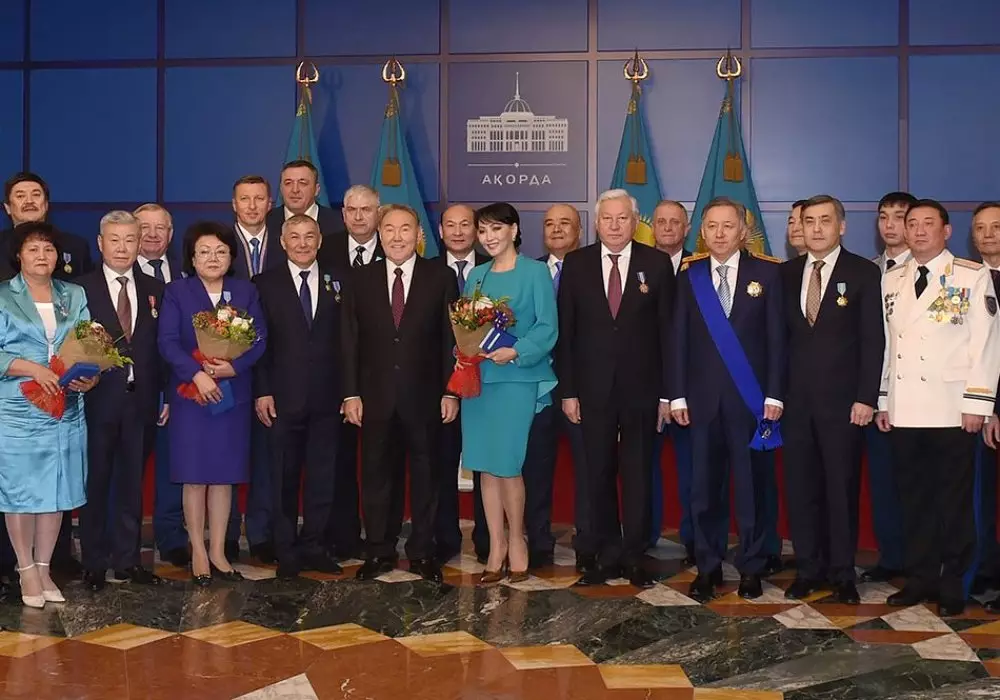 "У каждого есть опыт, заслуги в работе на благо нашей родины. Каждого по праву можно назвать гордостью Казахстана", - сказал Нурсултан Назарбаев и начал церемонию награждения.