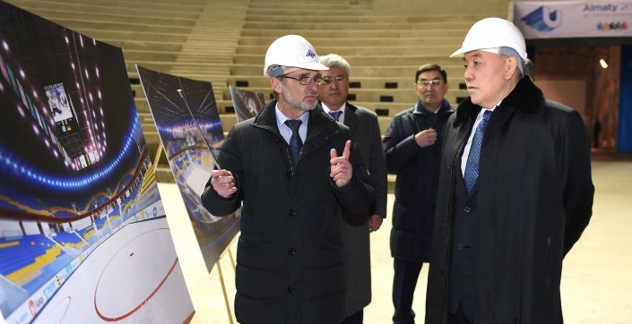 Во время посещения Нурсултан Назарбаев ознакомился с инфраструктурой спортивного сооружения, где в 2017 году состоятся церемонии открытия и закрытия зимней Универсиады, а также соревнования по фигурному катанию и керлингу.