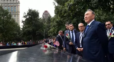 Назарбаев посетил мемориал "11 сентября" в Нью-Йорке Нурсултан Назарбаев возложил цветы к мемориалу "11 сентября" в Нью-Йорке. Фото с сайта akorda.kz
