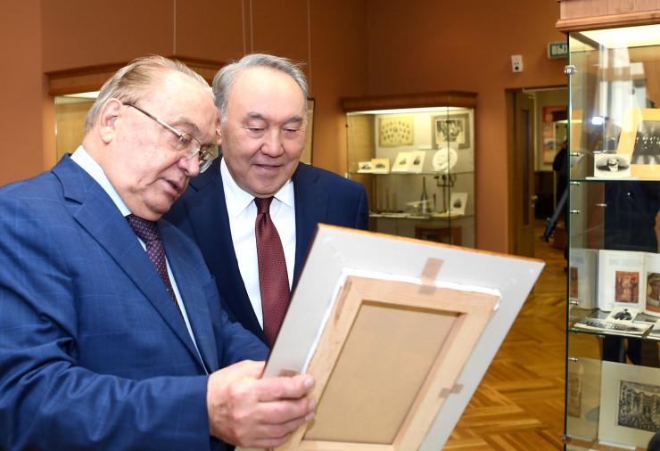 Елбасы встретился с ректором вуза Виктором Садовничим, ознакомился с экспозициями выставки Библиотеки Первого Президента, посвященной идее евразийской интеграции, а также осмотрел музей университета, где оставил запись в книге почетных гостей.