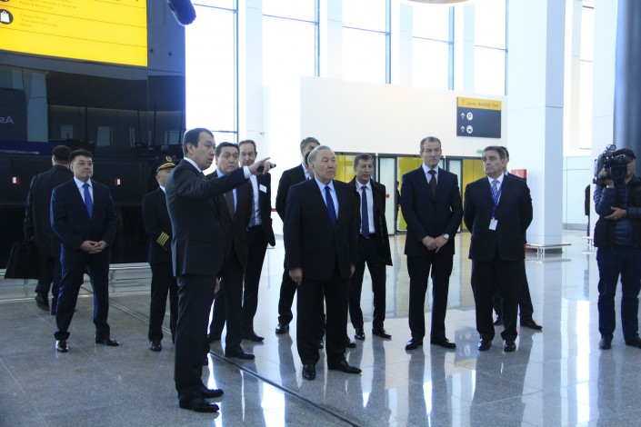 Президент Казахстана Нурсултан Назарбаев посетил новый терминал международного аэропорта Астаны, передает корреспондент Tengrinews.kz.