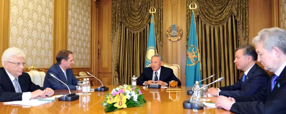 В сообщении говорится, что Президент Казахстана поздравил Нарышкина с назначением на должность председателя Государственной думы и отметил, что парламенты двух стран играют важную роль в интеграционных процессах Казахстана и России.
