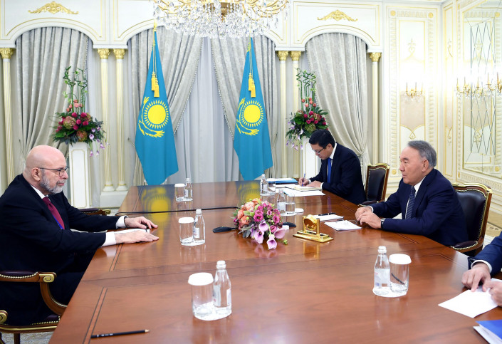 Кроме того, Нурсултан Назарбаев провел встречу с президентом Центра национальных интересов, издателем журнала The National Interest Дмитрием Саймсом.