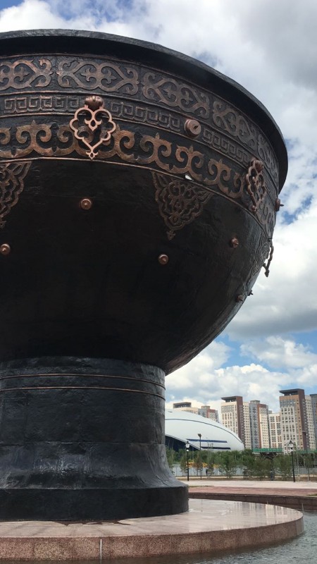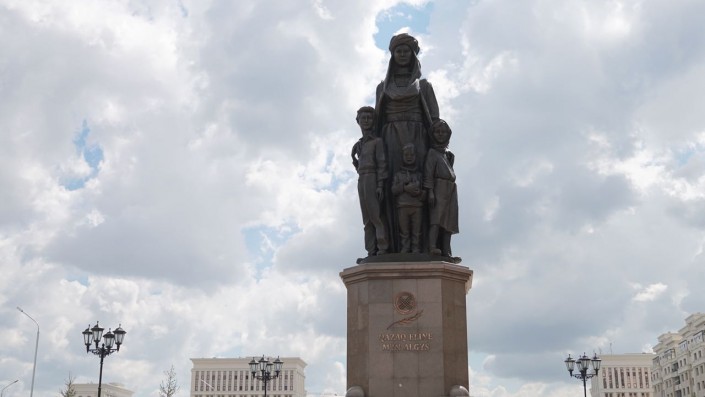Также Президенту показали 14-метровый памятник "Қазақ еліне мың алғыс" - "Тысяча благодарностей казахской земле". По данным пресс-службы акимата, бронзовая скульптура поставлена на пьедестал из искусственного гранита, выполнена в виде женщины в традиционном казахском одеянии - Матери-Родины - в окружении детей. Скульптура отражает Казахстан как народ разных национальностей, поэтому один из сыновей - казах, второй - представитель корейской национальности, а девочка имеет европейскую внешность.